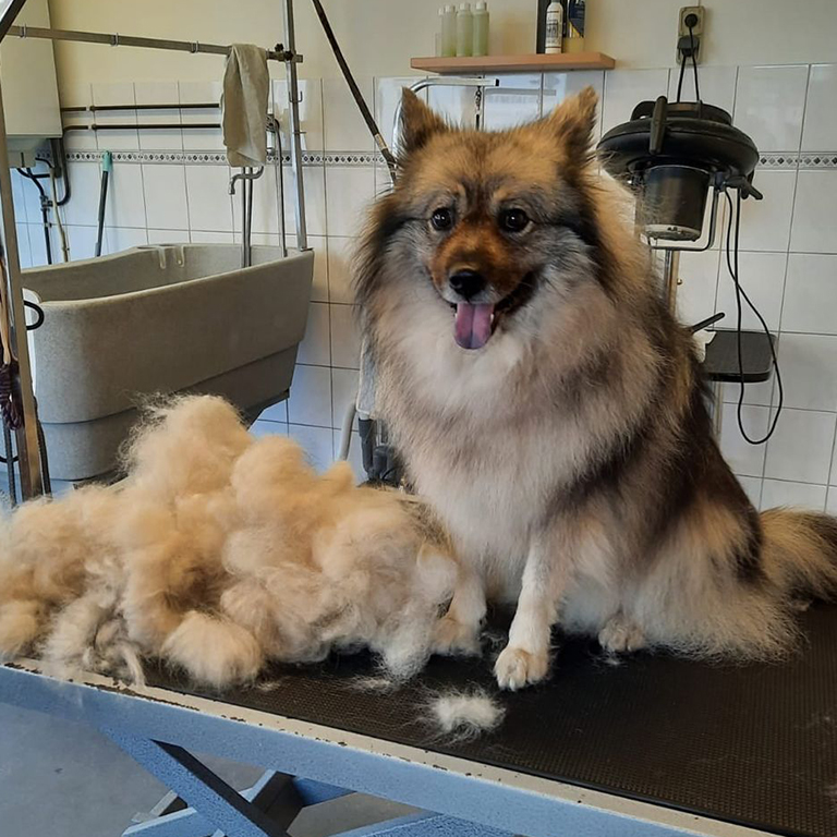 Dit is het uitdunnen van de vacht met een effileerschaar. Het wordt vooral gedaan bij Spaniels en Retrievers.