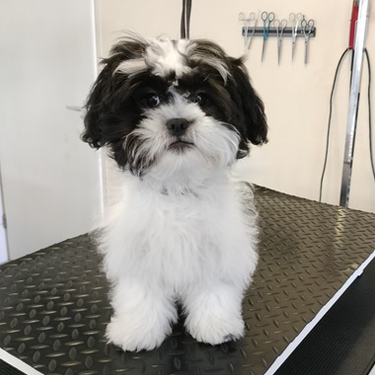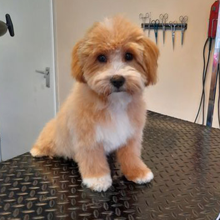 Een pup kan al vanaf een leeftijd van zo`n drie maanden voor het eerst naar de trimsalon. Voor een puppy is alles nieuw en spannend. Het is daarom belangrijk voor de pup om niet teveel prikkels in één keer te krijgen. De eerste keer is alleen een kennismaking, even rondlopen en wat lekkers eten. De volgende afspraak gaan we dan een stapje verder en kan hij op tafel staan. Ik bekijk per puppy hoeveel het hondje kan hebben. Zo went de pup geleidelijk aan de volledige trimbeurt.
